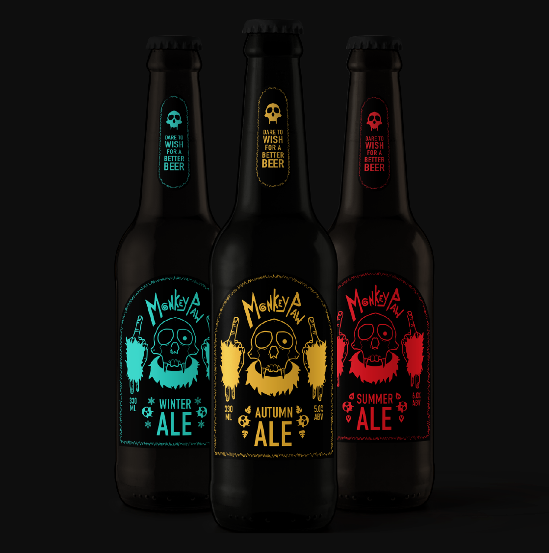 The story of the Monkey Paw inspired me to come up with a beer label and appropriate tagline. I wanted the design to the speak to the consequences of making a wish on a Monkey Paw [wish would be granted but in a twisted and unexpected way].